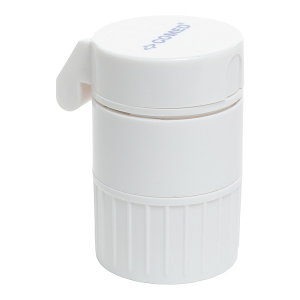 Fiable et résistant, ce coupe-écrase comprimés Comed a un format de poche qui s’emmène partout. Le petit compartiment de stockage est d’ailleurs spécialement conçu pour transporter ses médicaments avec soi.