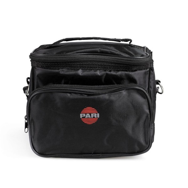 La sacoche pour le transport du nébuliseur Pro PariBoy est équipée d'une poignée sur sa face supérieure et d'une sangle pour l'épaule. Une pochette à l'avant est aussi disponible.