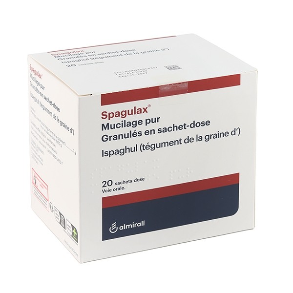 Spagulax Mucilage pur granulés est un médicament contenant de l'ispaghul. Il s'agit d'un laxatif de lest préconisé dans le traitement symptomatique de la constipation.