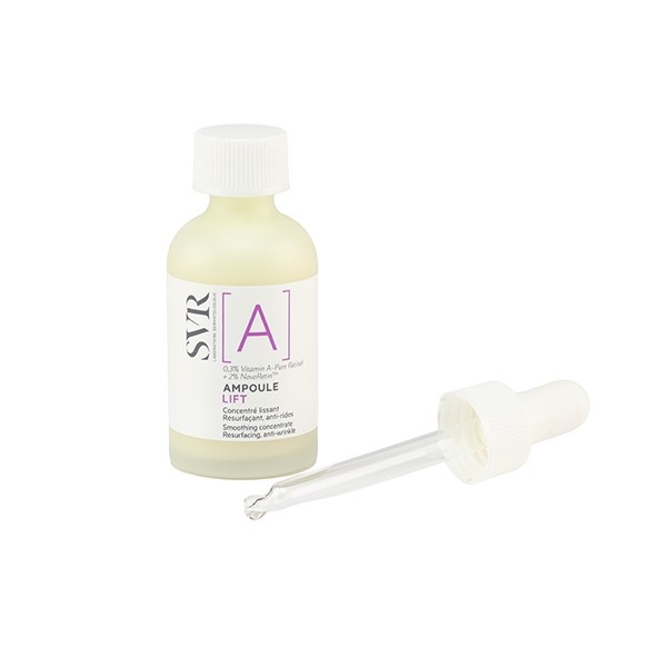 Afin de cibler le plus précisément possible les besoins des peaux marquées par les signes de l'âge, les laboratoires SVR ont développé l'ampoule lift A, un concentré lissant, resurfaçant et anti-rides. Ce soin visage est idéal pour les peaux irrégulières qui présentent des défauts cutanés, notamment des rides, mais aussi des pores dilatés. Il s'utilise comme un sérum, avant la crème de nuit, afin d'améliorer la qualité générale de l'épiderme. Ainsi, la formule contenue dans l'ampoule lift [A] SVR va lisser les rides, resurfacer et affiner le grain de peau tout en favorisant la régénération des cellules.