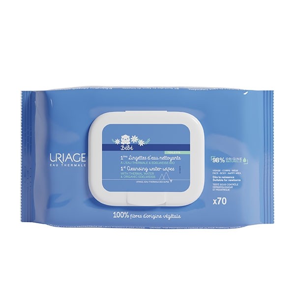 Les 1ères Lingettes d'eau nettoyante Uriage bébé sont des lingettes pré-imprégnées et sans rinçage pour nettoyer et débarbouiller en un tour de main le visage, le corps et le siège de bébé. Il est essentiel de nettoyer correctement la peau de bébé en tenant compte de sa fragilité, et ce, dès sa naissance.