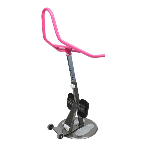 Le montant du guidon est réglable en hauteur tous les deux centimètres, en fonction de la taille du patient. Enfin, une sangle Sango est fournie avec le dispositif et permet de ceinturer le patient pour une sécurité renforcée.