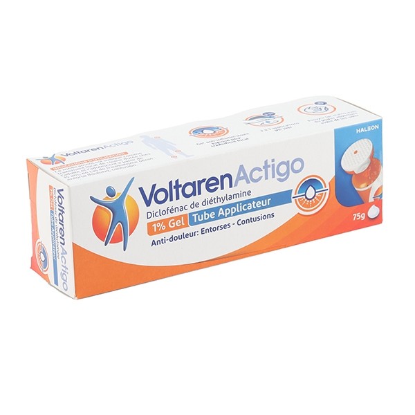 Voltaren Actigo 1% est un médicament sous forme de gel topique indiqué pour soulager les douleurs liées à un traumatisme bénin de type entorse, foulure ou contusion. Il contient du diclofénac, un actif anti-inflammatoire et antalgique.